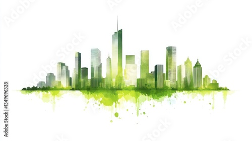 Abstract cityscape skyline, green watercolor, urban landscape, background image, for presentation, poster, environmental concept