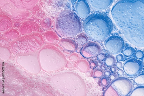 Abstract close-up of vibrant, bubbly swirls of pink and light blue