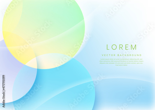 Abstract colorful pastel gradients color overlapping circles on light blue background with copy space for text.