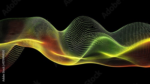 abstract, background, wave, light, dot, line, colourful, design, texture, pattern, vibrant, energy, motion, dynamic, flow, curve, ripple, glowing, bright, illuminated, aglow, shiny, sparkling, digital, art, graphic, illustration, technology, futuristic, modern, style, science, network, connection, datum, mesh, grid, particle, pixel, green, yellow, orange, black