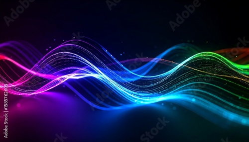 abstract, colourful, wavy, line, digital, particle, neon, glow, light, dynamic, motion, rainbow, vibrant, fluid, technology, design, art, graphic, background, elegant, modern, geometric, futuristic, energy, texture, smooth