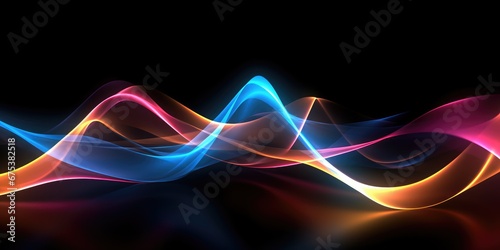 Abstract colorful wavy lines on black background, futuristic technology concept.