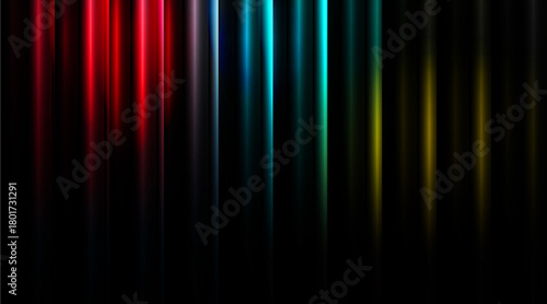 Abstract dark background with vertical glowing lines in various colors for modern technology concept