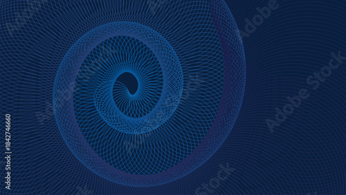 Abstract dark blue spiral background with intricate, flowing geometric lines creating a deep, hypnotic visual design, perfect for technology, science, and corporate presentations or digital artwork wa