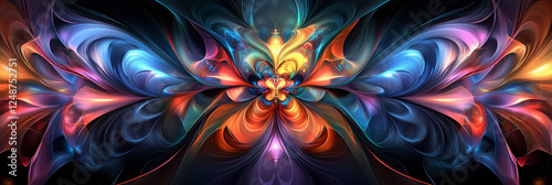 Abstract digital artwork generated by AI, blending classical and futuristic styles, vivid colors, generative AI