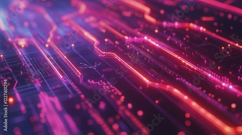 Abstract Digital Circuitry: Neon Glowing Lines and Nodes