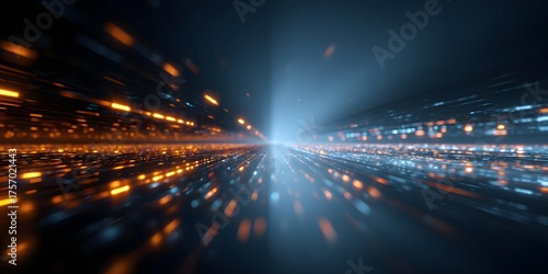 abstract, digital, city landscape, futuristic, glowing, light, urban, night, technology, modern, architecture, illumination, energy, motion, speed, blur, perspective, vibrant, colours, orange, blue, white, dark, background, design, concept, art, creative, scene, view, horizon, spectrum, light, beam, center, symmetry, pattern, grid, network, datum, information, communication, cyber, space, dimension, central, bright, creating