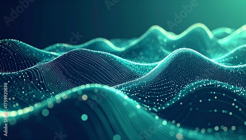 Abstract Digital Data Wave Pattern with Glowing Bokeh Lights and Teal Gradient. for bussines background