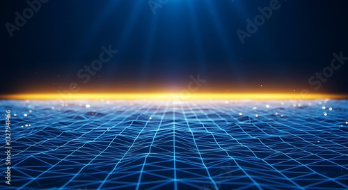 Abstract Digital Landscape: Network Grid and Golden Horizon