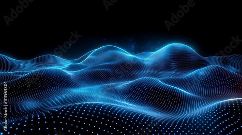 Abstract Digital Landscape with Blue Waves and Light Points in Dark Background for Technology and Science Themes