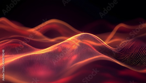 Abstract digital wave pattern in warm orange and red tones.