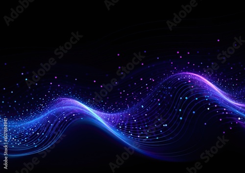 abstract digital wave with blue and purple lines on black background. Generative AI