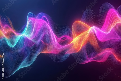 Abstract digital waves of vibrant colors and glowing lines.