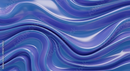 Abstract flowing waves of blue and purple with a glossy, metallic sheen.