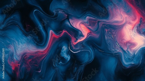 Abstract Fluid Art with Blue Pink Swirls