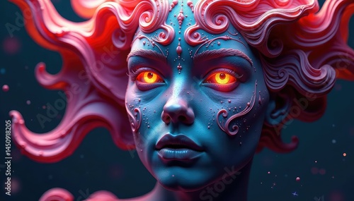 Abstract fractal design resembling a face, complex lines , intricate, artwork, technology