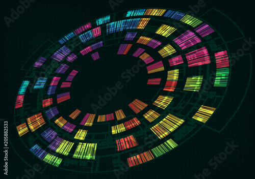 abstract, colourful, futuristic, background, technology, vector, banner, digital, modern, template, signs, illustration, design, copy space, circle, geometric, concept, element, dark, spectrum, graphic