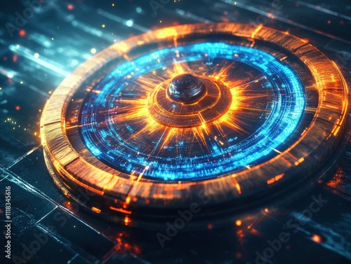 futuristic, interface, digital, technology, science, abstract, design, neon, glow, light, circle, round, glowing, orange, blue, metal, graphic, electronic, circuit, art, modern, style, future, innovation, tech, background, illustration, artistic, creative, concept