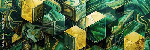 Abstract Geometric Elegance in Green and Gold