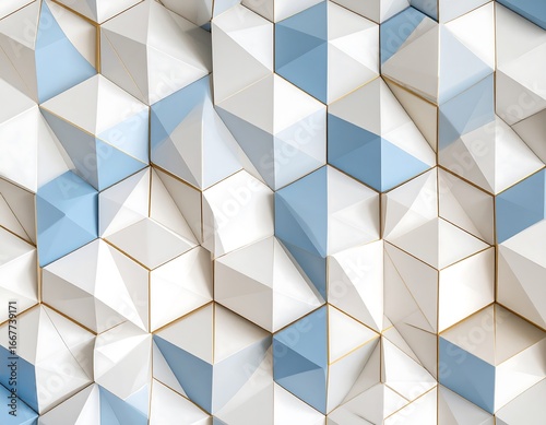 geometric, abstract, pattern, design, texture, three-dimensional, shape, triangle, hexagon, cube, structure, modern, wave, light, blue, white, gold, line, symmetry, patterned, background, surface, composition, faceted, architecture, interlocking, contemporary, dynamic, complex