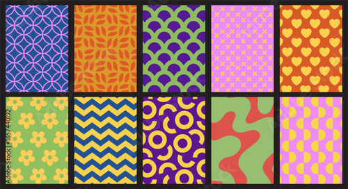 Abstract geometric posters background minimal modern shapes with art texture, Seamless print of contemporary backdrop for banners and covers, retro modern patterned paper for wrapping, vintage funky.