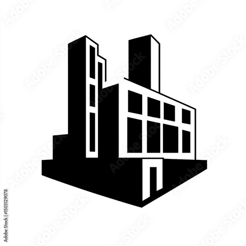 Abstract geometric rendering of a stylized industrial building silhouette