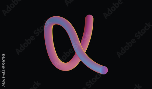 Abstract glowing alpha symbol with vibrant pink and blue gradient on black background