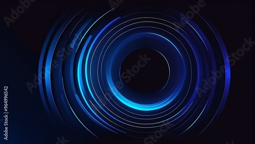 Abstract glowing circle lines on dark blue background. Geometric stripe line art design. Modern shiny blue lines. Futuristic technology concept. Suit for poster, cover, banner, brochure, website