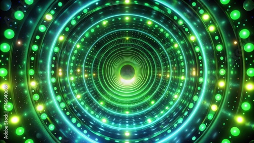 Abstract Glowing Green Tunnel of Circular Lights, Creating a Psychedelic Visual Experience