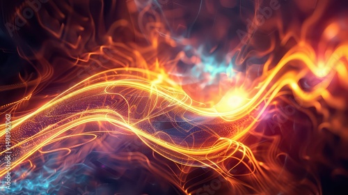 Abstract glowing lines and swirling smoke in shades of orange blue and purple background design art