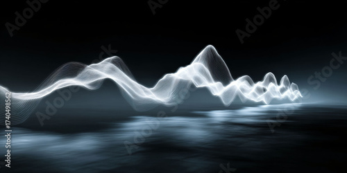 abstract, waveform, digital, technology, datum, visualisation, glowing, aglow, light, white, dark, black, futuristic, energy, science, motion, vibrant, modern, line, curve, pattern, graphic, background, art, computing, music, audio, equalizer, pulse, rythm, vibration, network, fluid, smooth, elegant, dynamic, innovation
