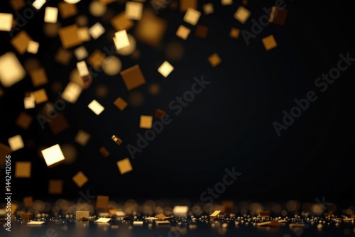 event, shimmer, glamour, falling, new year, celebration, dark, holiday, metallic, festive, winter, decoration, gold, christmas, glistering, design, black, shine, sparkle, element, abstract, shiny, confetti, luxury, party, texture, background