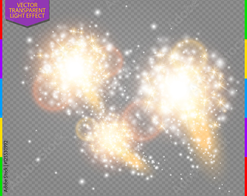Abstract golden sparkling firework effect with white sparks modern design. Glow flash light. Sparkles light vector on transparent background. Holiday Concept.