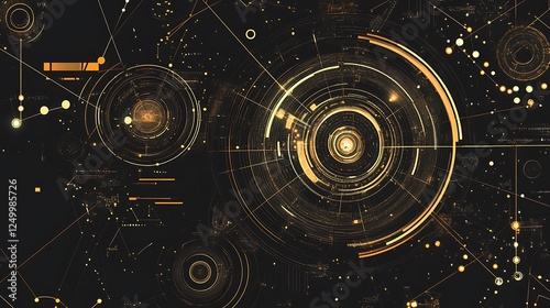 abstract, technology, interface, design, gold, gold, black, dark, background, futuristic, digital, network, connection, system, datum, information, line, circle, point, dot, node, element, graphic, pattern, texture, style, modern, contemporary, elegant, sophisticated, complex, intricate, visual, illustration, artwork, art, concept, theme, aesthetic, cosmic, space, universe, innovation