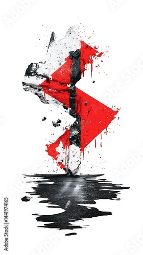 abstract, graphic, broken, stylised, red, white, black, dark, shape, element, design, art, image, modern, trendy, creative, colourful, artistic, visual, powerful, striking, dynamic, textured, splash, dripping, water, grunge, composition, futuristic, bold, edgy, impact, symbol, logotype, texture, splatter