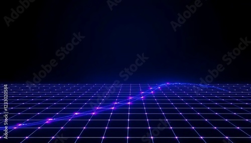 Abstract Grid Network With Glowing Purple Lines