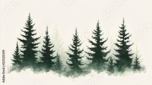 Abstract hand drawn nostalgic forest landscape art wallpaper.