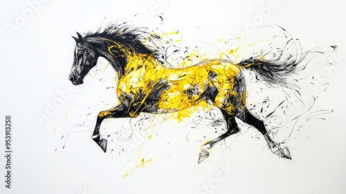 Abstract Horse Silhouette: Yellow and Black Pen Art