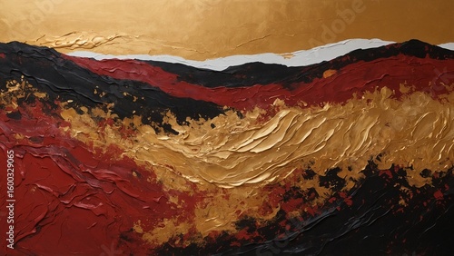 Abstract Impasto Landscape Painting in Red and Gold Hues