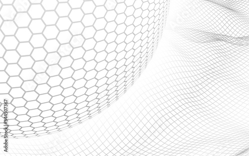 Abstract landscape on a white background with white honeycomb sphere. Cyberspace grid. hi tech network. 3d illustration