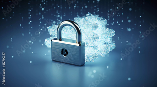 Abstract metaphor with cloud and modern lock. Surreal optical illusion, online privacy, data privacy, Generative AI.