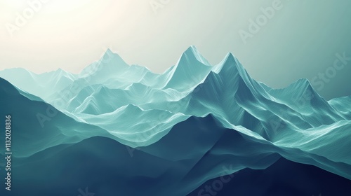 Abstract mountainous terrain with sharp geometric peaks and gradient-filled valleys