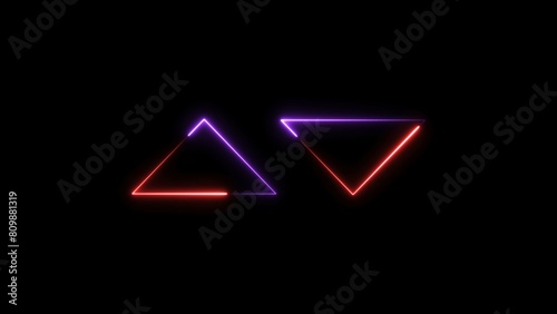 Abstract neon geometric sign icon illustration on black screen.