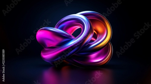 abstract, three-dimensional, render, metallic, neon, knot, intertwined, form, shape, design, art, digital, artwork, graphic, illustration, modern, contemporary, futuristic, technology, science, innovation, creative, imagination, colourful, vibrant, purple, pink, blue, orange, gold, glossy, shiny, smooth, curve, loop, line, dark, background, light