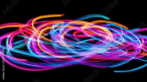 Abstract neon light trails cutting through the darkness, creating a vibrant representation of innovation and success.