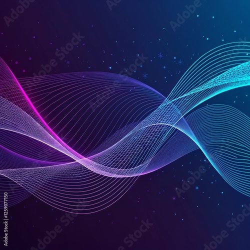 Abstract Neon Wave Composition Purple and Blue Gradient Lines, Particle Background, Digital Art Abstract, Neon Art