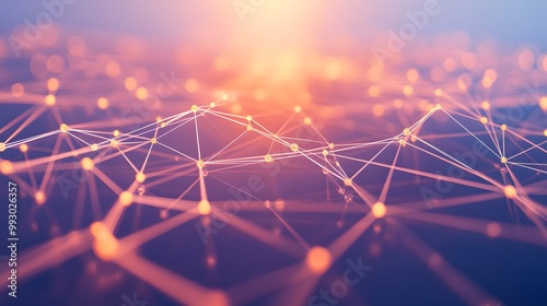 abstract, network, node, line, connected, dot, wire, mesh, geometric, shape, pattern, structure, design, futuristic, digital, technology, datum, connection, cyberspace, communication, space, universe, light, glow, bright, orange, pink, purple, blur, background, texture, gradient, bokeh