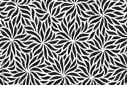 abstract, pattern, floral, organic, swirling, flower petals, dark, black, white, background, design, graphic, art, decorative, textile, fabric, wallpaper, surface, print, modern, contemporary, stylised, nature, botanical, foliage, leaf, vibrant, bold, contrast, monochrome, simplicity, elegance, texture, repeating, seamless, illustration, vector, artistic, creative, visual, dynamic, energy, movement, striking