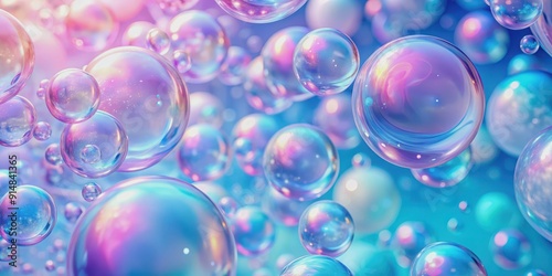 Abstract pastel pink and blue background with iridescent magical air bubbles, wallpaper with glass balls , pastel