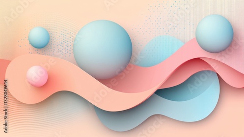 Abstract Pastel Wave Design with Floating Spheres: A Modern Art Background